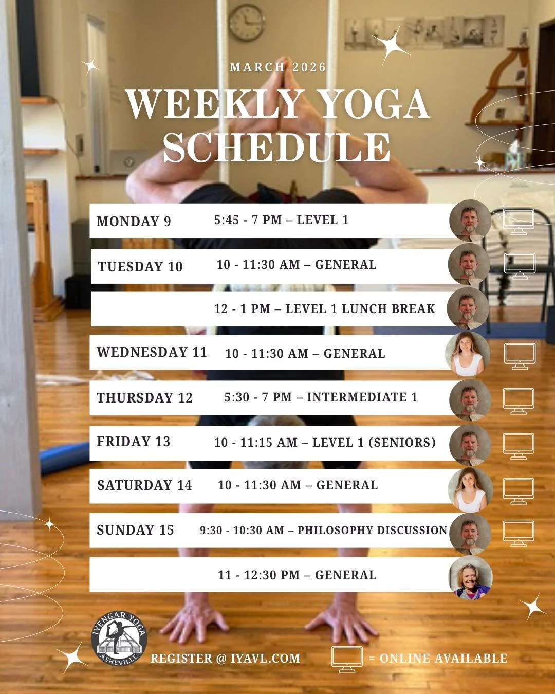With beautiful hardwood floors, a fully equipped yoga rope wall, and classical Iyengar props, our space is designed to support your practice. Whether you're joining us for a class or special event, you’ll find a community dedicated to growth, alignment, and well-being.